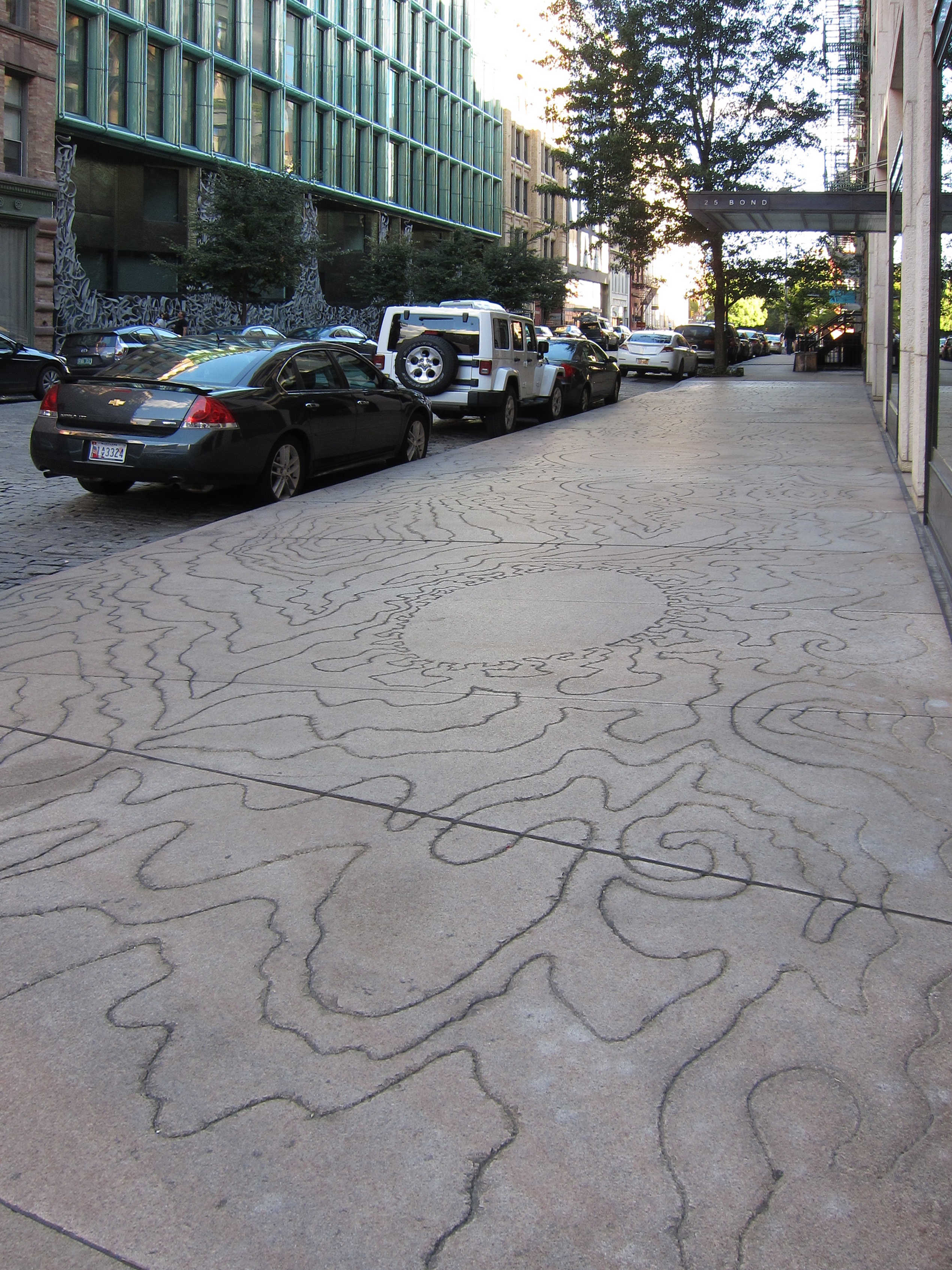 Die «Sidewalk»-Granitplatten, in meist rechteckiger Form von bis zu zehn Quadratmetern Grösse und teilweise aus dem 18. Jahrhundert stammend, gibt es überwiegend in Downtown Manhattan: Am Broadway im SoHo und in einigen Strassen von TriBeCa. Das Gehen auf diesen abgelaufenen Zeitzeugen ist etwas Besonderes. Die Granitsteine strahlen eine spürbare Energie aus, verglichen mit den üblichen Betontrottoirs in New York.