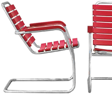 Der Gartensessel GSE 01 (Bild oben rechts) von Atelier Alinea und der Bättig 10 Freischwinger von Manufakt (Bild unten) sehen auf den ersten Blick zum Verwechseln ähnlich aus! Beide Modelle haben ein freischwingendes Stahlrohrgestell für die primäre Tragkonstruktion. Die Latten aber, als sekundäres statisches Element, unterscheiden sich nicht nur bezüglich Material und deren Anzahl, auch die Verbindung zu den Stahlrohren ist unterschiedlich. Beim Modell GSE 01 werden die 13 wetterfesten Eschenholz-Latten auf das freischwingende Stahlrohrgestell gesetzt. Beim Bättig 10 Freischwinger werden die 12 PVC-Leisten für Sitz und Rücken zwischen das feuerverzinkte Stahlrohrgestell befestigt. Ein kleiner, aber feiner Unterschied!