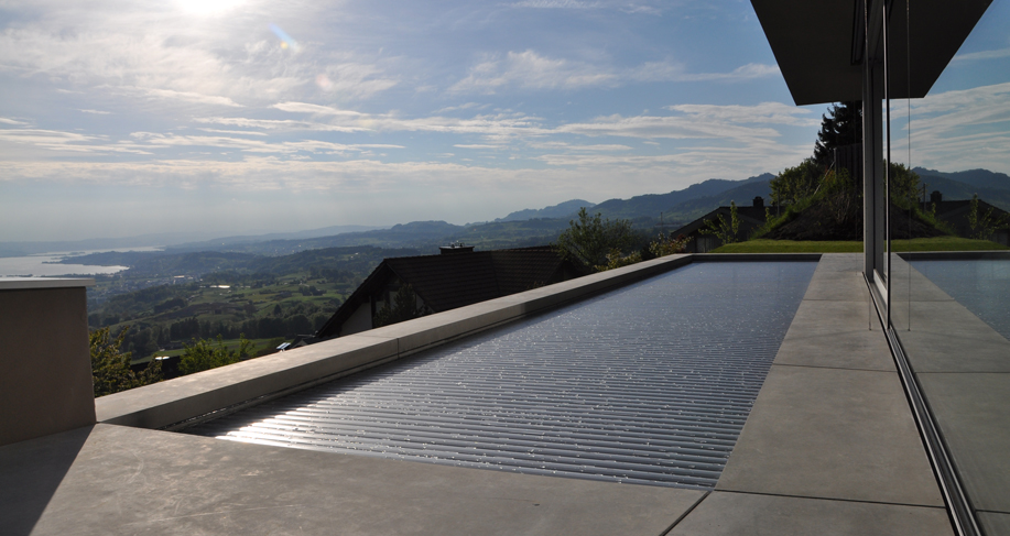 Weitere Unternehmer und Planer – Pooltechnik: Rüegg Udo AG, Gommiswald (Lukas Rüegg) | Fugenabdichtungen: Roger Meier, Richterswil | Oleophobierung Betonelemente: Desax AG, Gommiswald (Bruno Bernet) | Baumanagement: Landhaus Bau, Rüeterswil (Sepp Arnold) | Geometer: Lukas Domeisen, Uznach (Pascal Dobler)