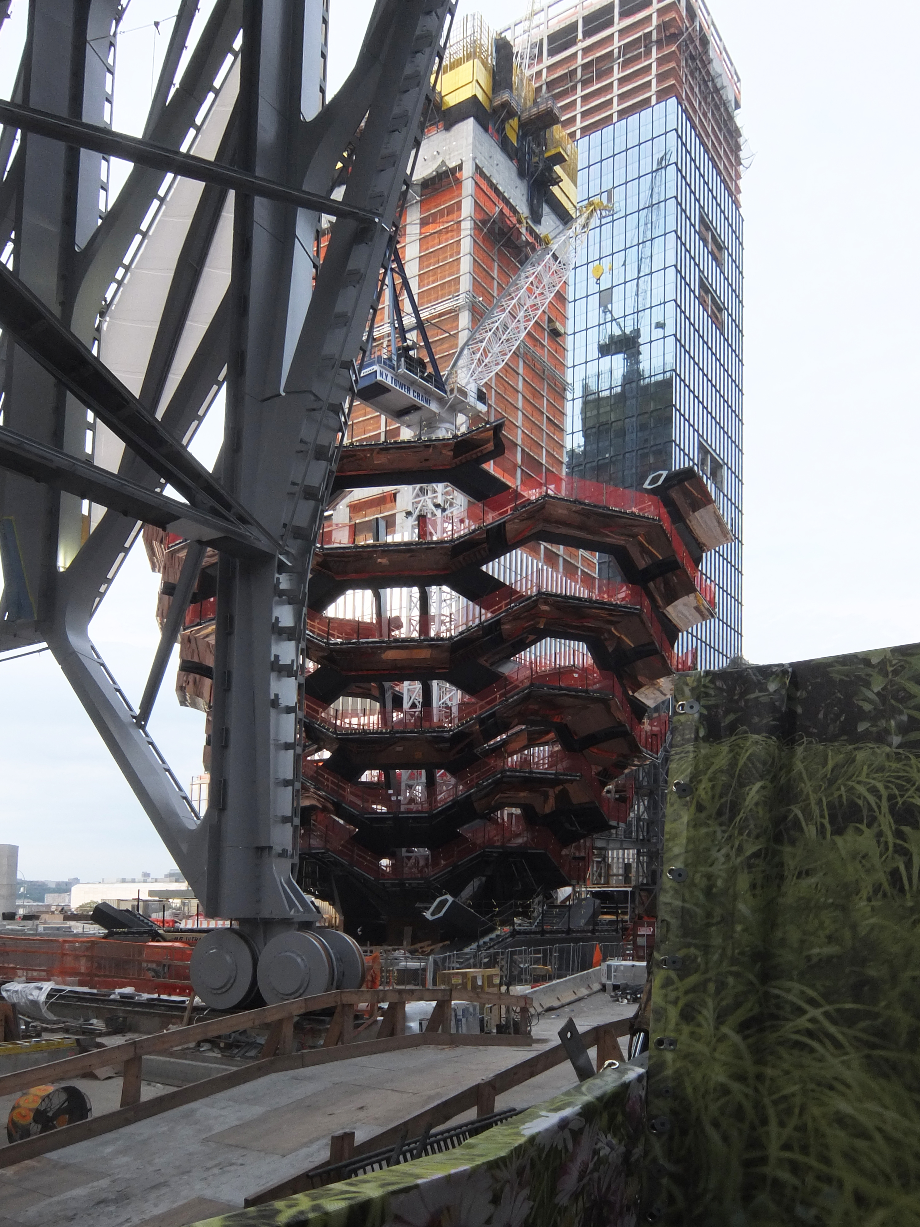 «Vessel» soll die Besucher direkt vom «High Line Park» in die «Hudson Yards» locken. «Hudson Yards» ist momentan das Mega-Vorhaben in New York City. Am Ende des High Line Parks zwischen der 30. und 34. Strasse, entsteht über den Abstellgleisen der Penn Stadion, dem verkehrsreichsten Eisenbahnknotenpunkt in Nordamerika mit über 500’000 Besucher täglich, das Hudson Yards-Projekt. Eine Ansammlung von Hochhäusern mit Büros und Wohnungen, einer Shopping-Mall mit 100 Luxusshops und diversen Restaurants. Doch die zwei eigentlichen Hauptattraktionen werden «The Shed» und «Vessel» sein. «The Shed» ist eine multifunktionale Kunsthalle auf Schienen, welche einen Platz von 17’000 Quadratmeter überdecken kann. «Vessel» steht in direkter Nachbarschaft zu «The Shed» und ist eine »sinnfreie« Treppenanlage über den Gleisen der Penn Station.