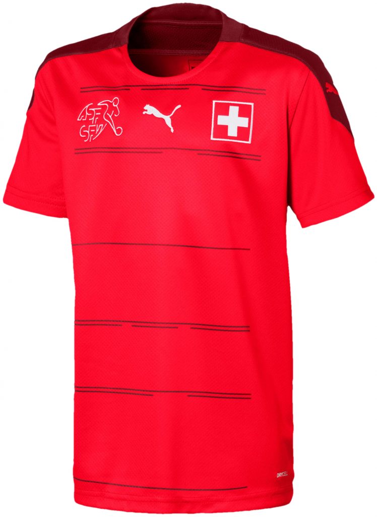 Der Trikot-Badge der Schweiz ist zu kleinteilig und daher als Verbandslogo, das mit Stolz, Rum und Ehre getragen werden soll, nicht geeignet. Die beiden Abkürzungen «ASF» und «SFV» sind durch ihre runde Grafik schwer lesbar, ebenso ist das Schweizerkreuz dazwischen kaum erkennbar. Der dynamische Strichfussballspieler trägt zusätzlich zur Verunklärung bei. Das ergänzende quadratische Schweizerkreuz auf dem Trikot passt formal nicht zum organischen Verbands-Badge. Richtigerweise müsste der Verbands-Badge links positioniert sein, über dem Herzen der Spieler!