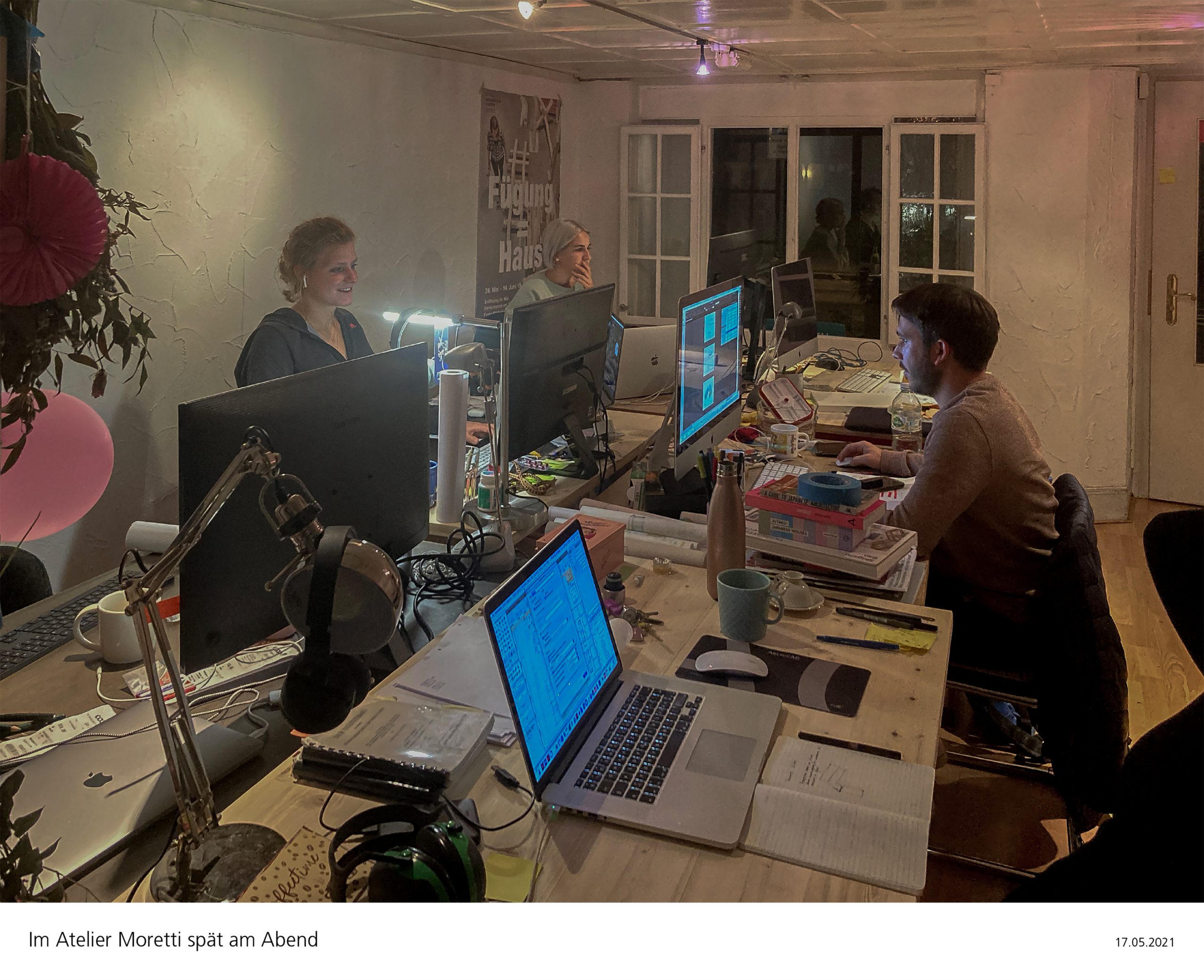 Während des Kurzentwurfs begannen wir uns langsam, aber sicher auf die intensive Zeit während der Bachelorarbeit vorzubereiten. Da aufgrund der Corona-Einschränkungen unser Atelier an der Schule geschlossen wurde, haben wir uns zu sechst zusammengeschlossen und uns auf die Suche nach einem eigenen Atelier für die Bachelorarbeit gemacht. Wir fanden in der Nähe des Franziskanerplatzes in Luzern ein leer stehendes Ladenlokal, welches wir über drei Monate mieten konnten, so richteten wir uns auf knapp 30 m2 mehr oder weniger häuslich ein.