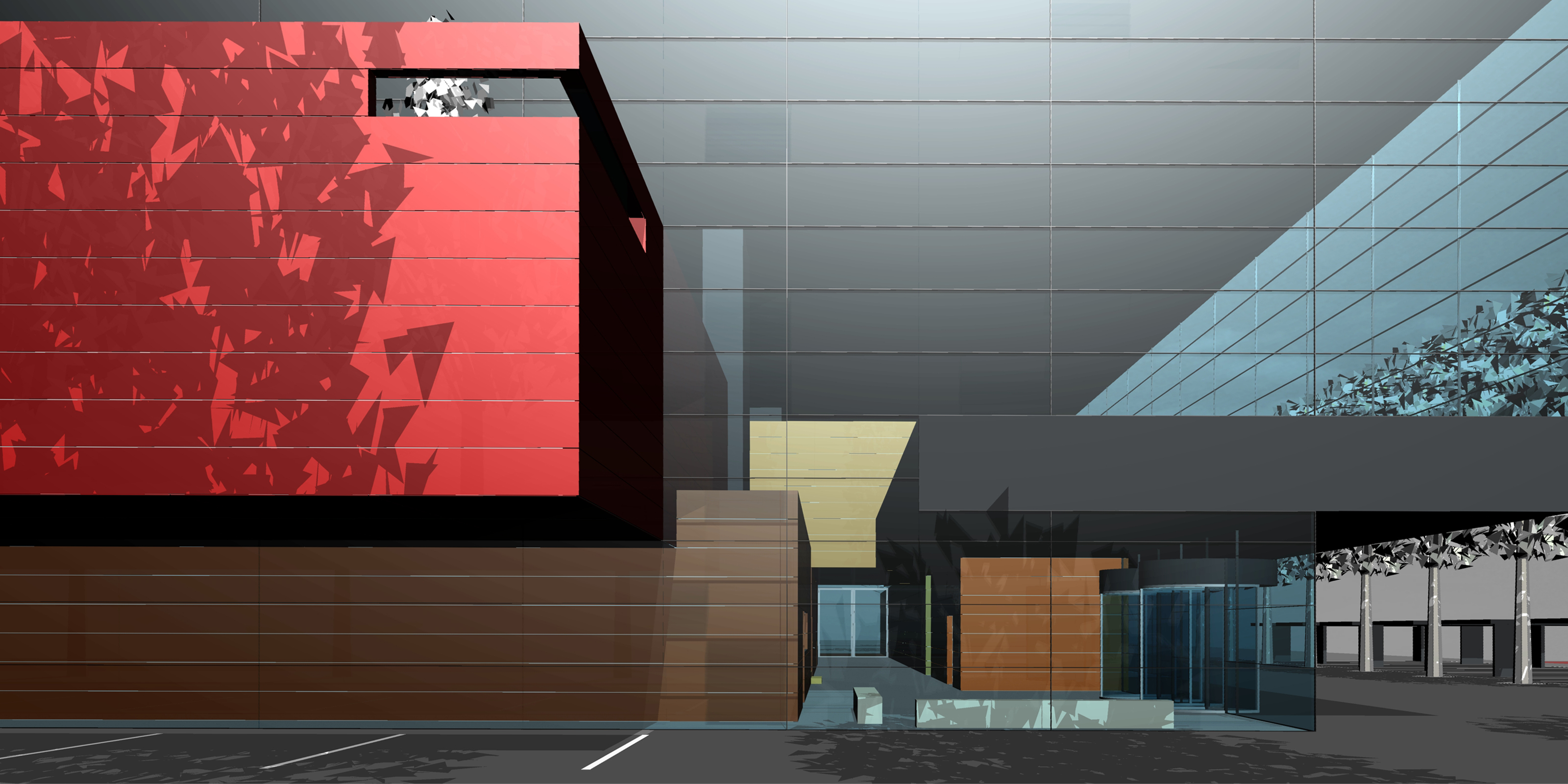 In einer Palette differenzierter erdfarbener Tönen unterscheiden sich die Funktionskörper in ihrer Farbigkeit und blenden sich mehr in die Landschaft ein, als dass sie sich davor abheben. Wie Geometrie gewordene Natur, sollen sich die Funktionskörper in die Umgebung eingliedern.